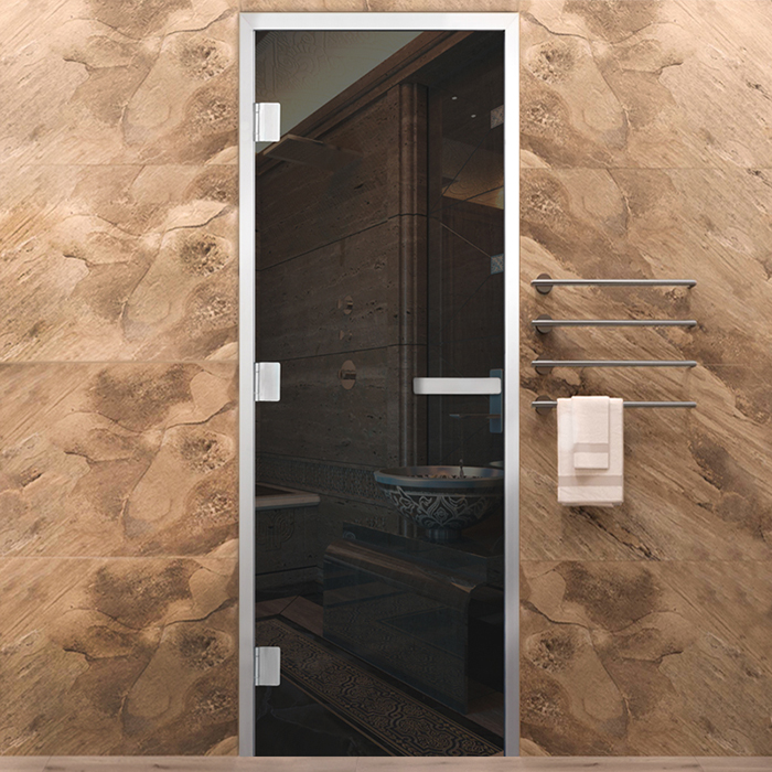 Стеклянная дверь для хамама Серая Элит