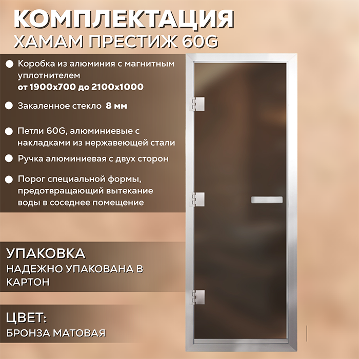Стеклянная дверь для хамама Престиж Бронза матовая