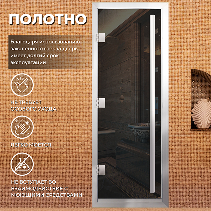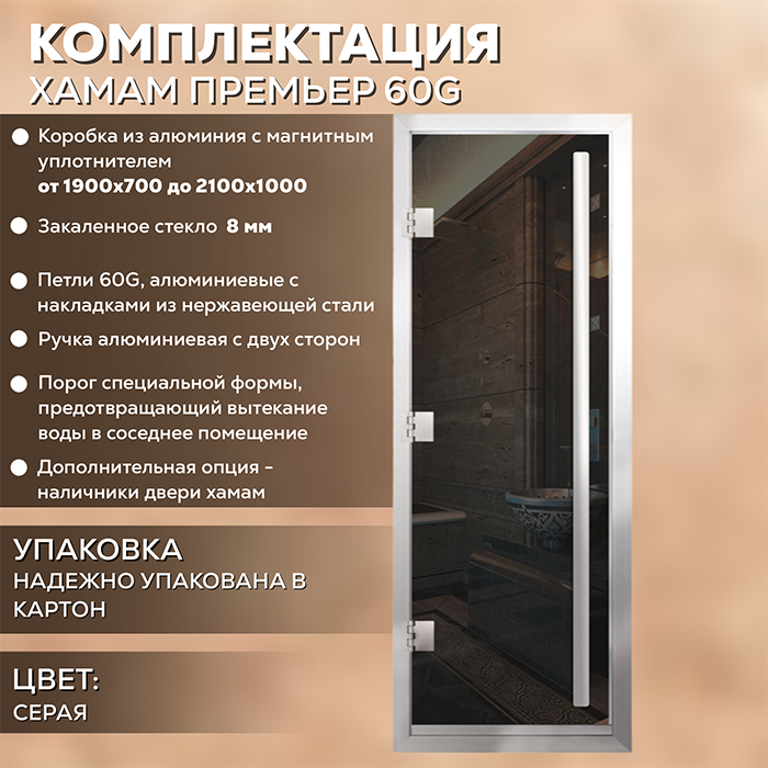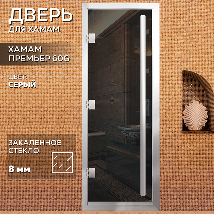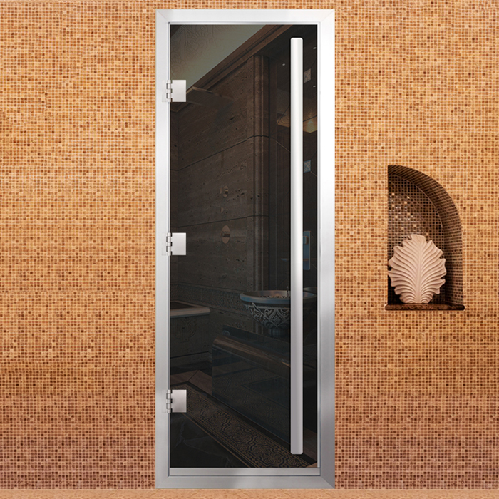 Новинка Стеклянная дверь для хамама Престиж с вертикальной ручкой Серая