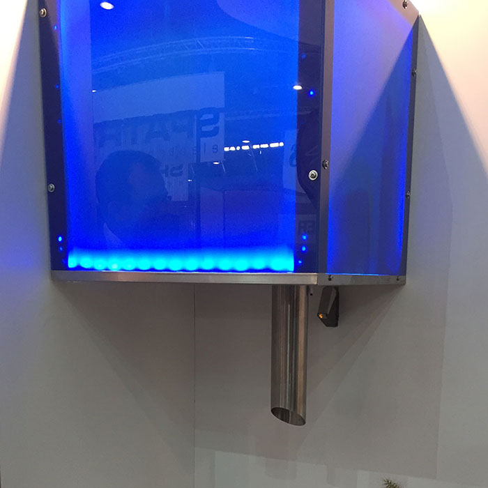EIS Tower Naked EB — встраиваемый ледогенератор. Данная модификация - с направленной вниз гибкой трубой (EB-EU) из нержавеющей стали. В комплекте лазерный датчик. В качестве опции возможно заказать подсветку.