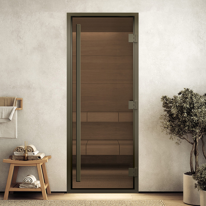 Дверь для хамама "Престиж бронза" в бронзовом профиле 1900х700