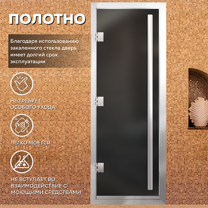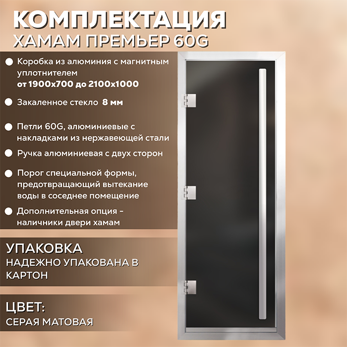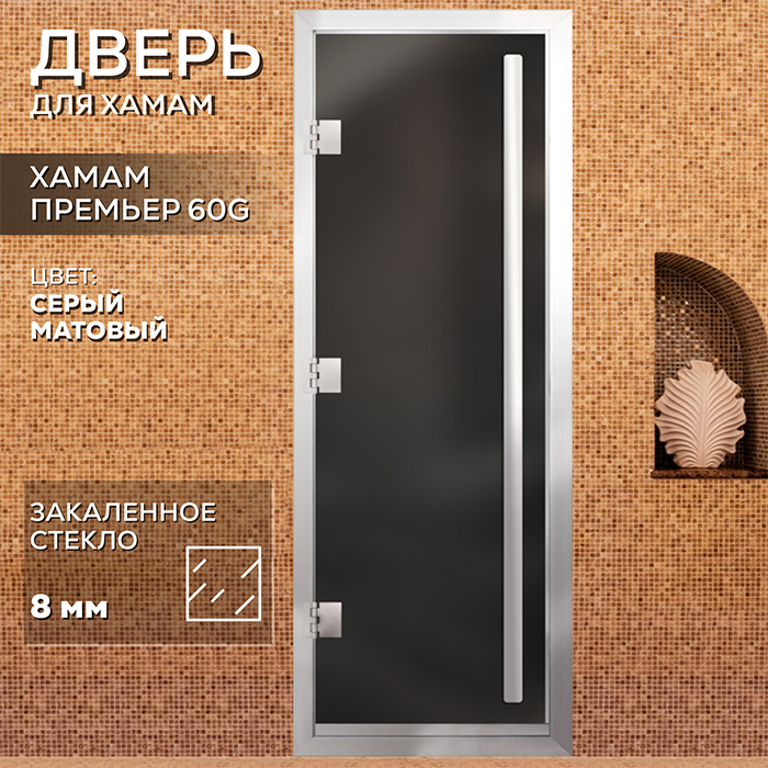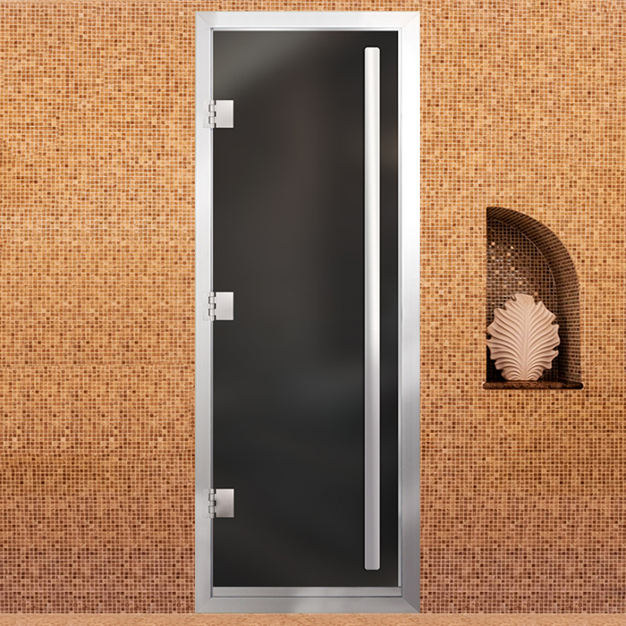 Новинка Стеклянная дверь для хамама Престиж с вертикальной ручкой Серая Матовая