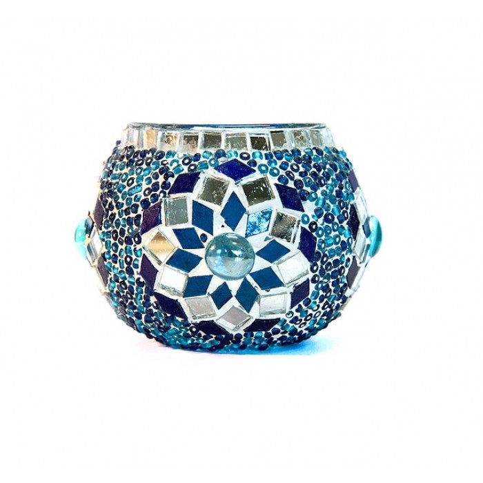 Мозаичный подсвечник, ручная работа, Турция, синий