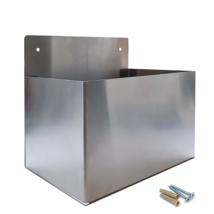 Надежная конструкция из нержавеющей стали AISI 304 толщиной 1 мм. Крепится на стену с помощью двух саморезов и дюбелей, входящих в комплект.