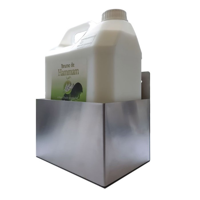 Держатель для канистр поможет организовать пространство в техническом помещении хамама. Теперь канистра с ароматом будет находиться в специально отведенном для неё месте.