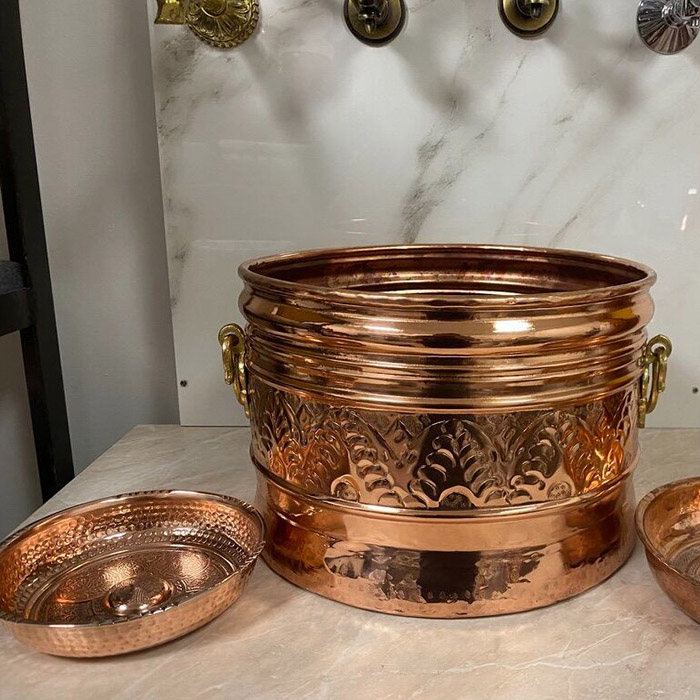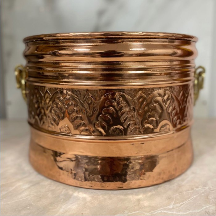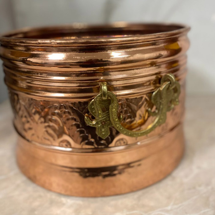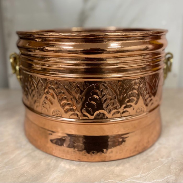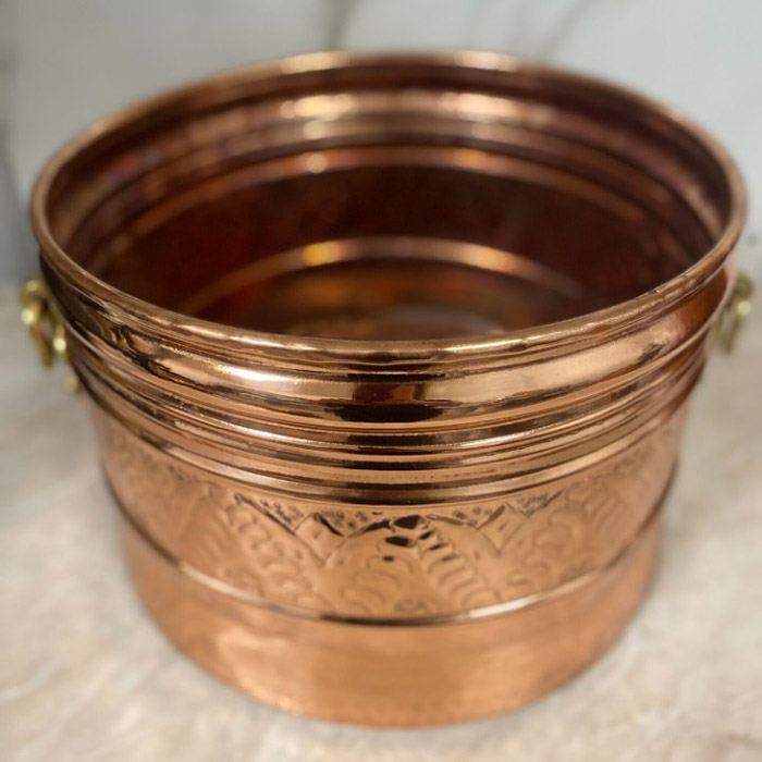 Ведро медное для образования пены, ЕМ-13 диаметр 32 см, высота 22 см, с ручками, для приготовления мыльного раствора, используется в турецкой бане. Можно использовать для обливания.