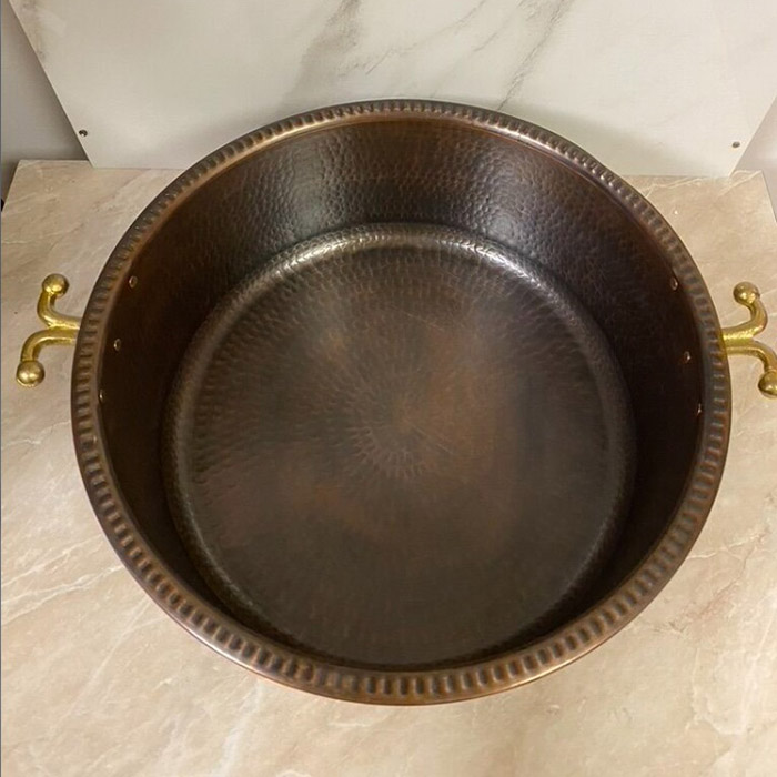 Таз медный 40 см, с ручками, 23 л, высота 16 см, для мыльного раствора или других целей